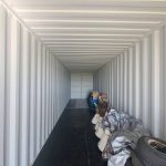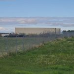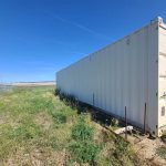 The chain link fence is 7 ft high and located inside the fenced in area are 2 – 40 ft long double door storage containers.